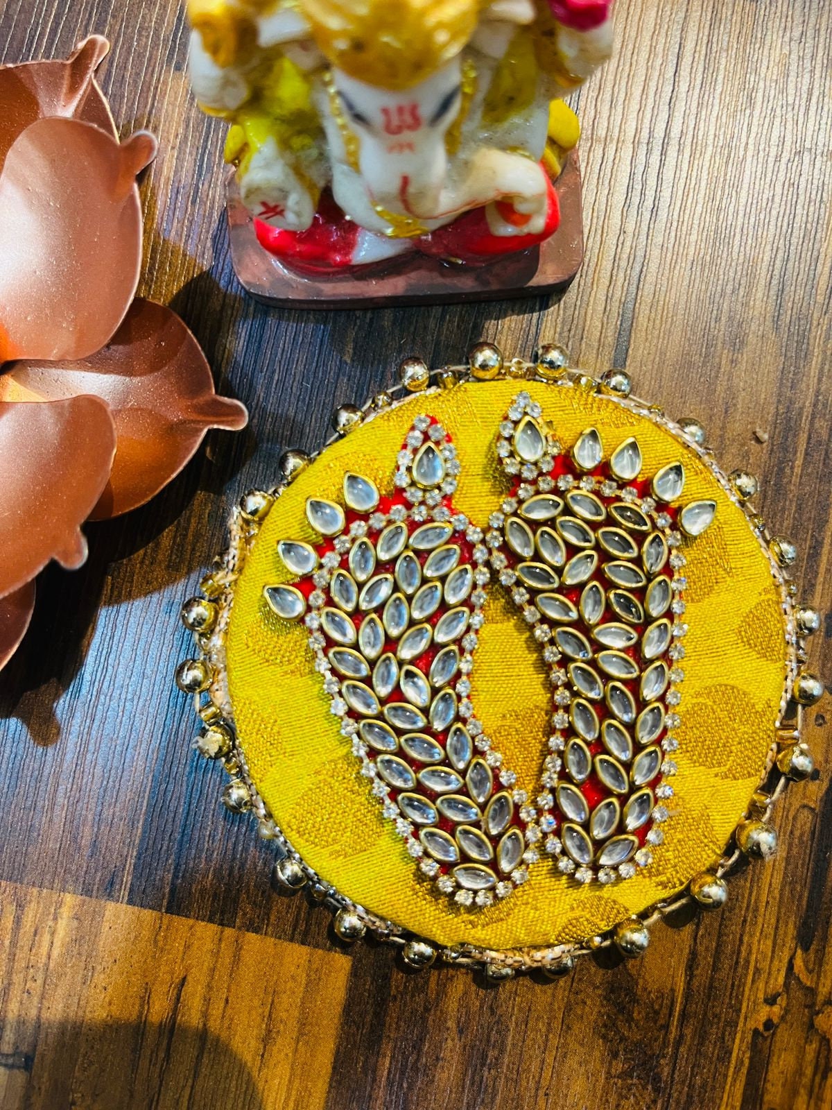 5 Sets Of kundan Laxmi Feet, Deewali Decor, Lakshmi Pagh, Pooja Favor, Laxmi Feet, Laksmi Charan, Lakshmi Pagla, Sri Lakshmi Chran Paduka