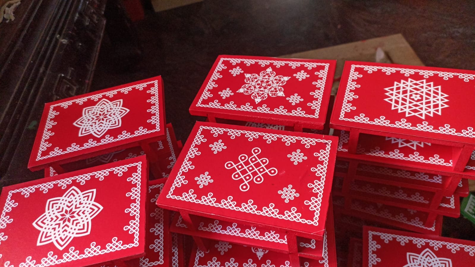 Kolam Manai / Diya Lamps / Deity Stand / Rangoli Square Wooden Chowki .