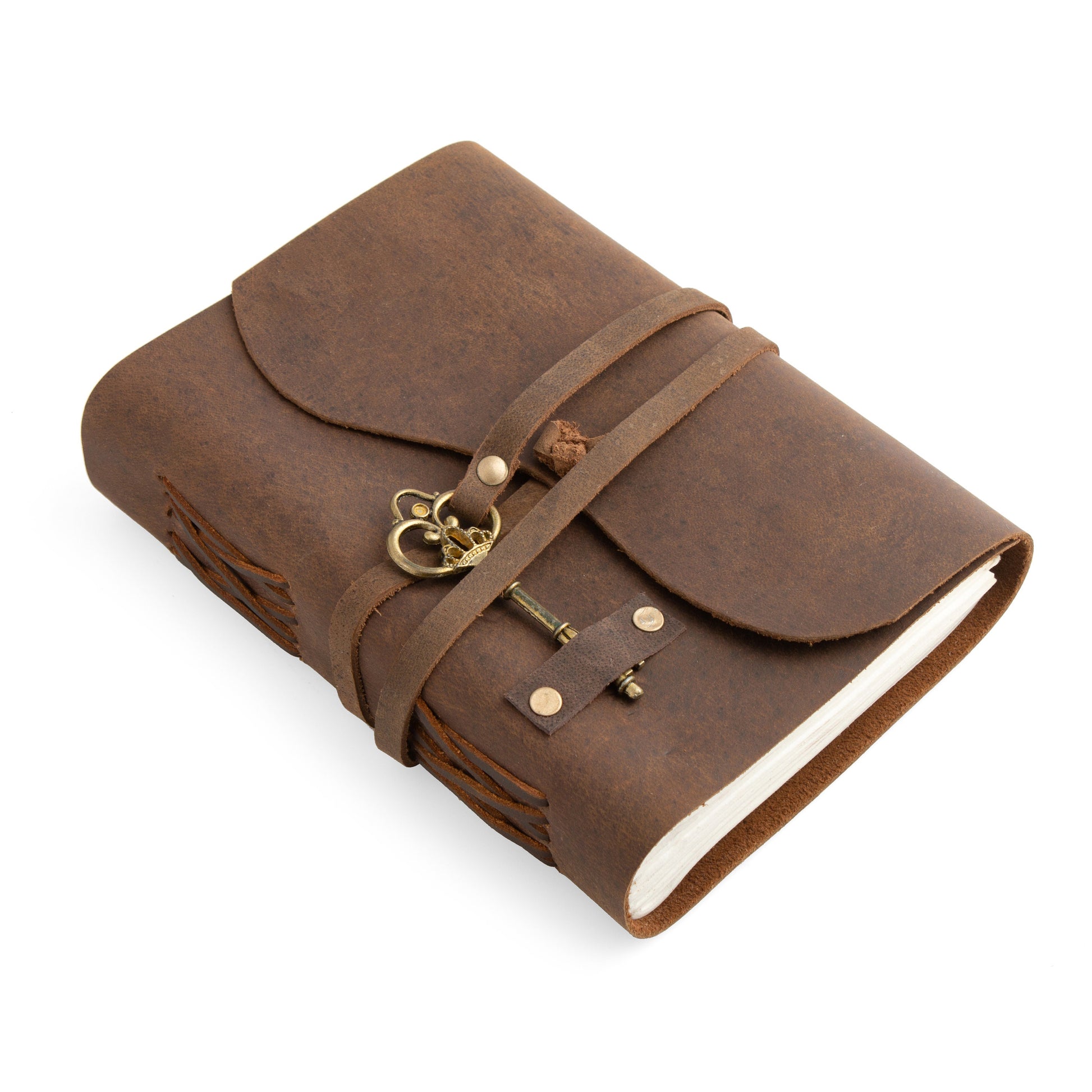 Buy 5 diaries wholesale Leather Journal with key Handmade DECKLE EDGE PAPER Journal Notebook-Soft Rustic leather travel diary-8x6"Planner