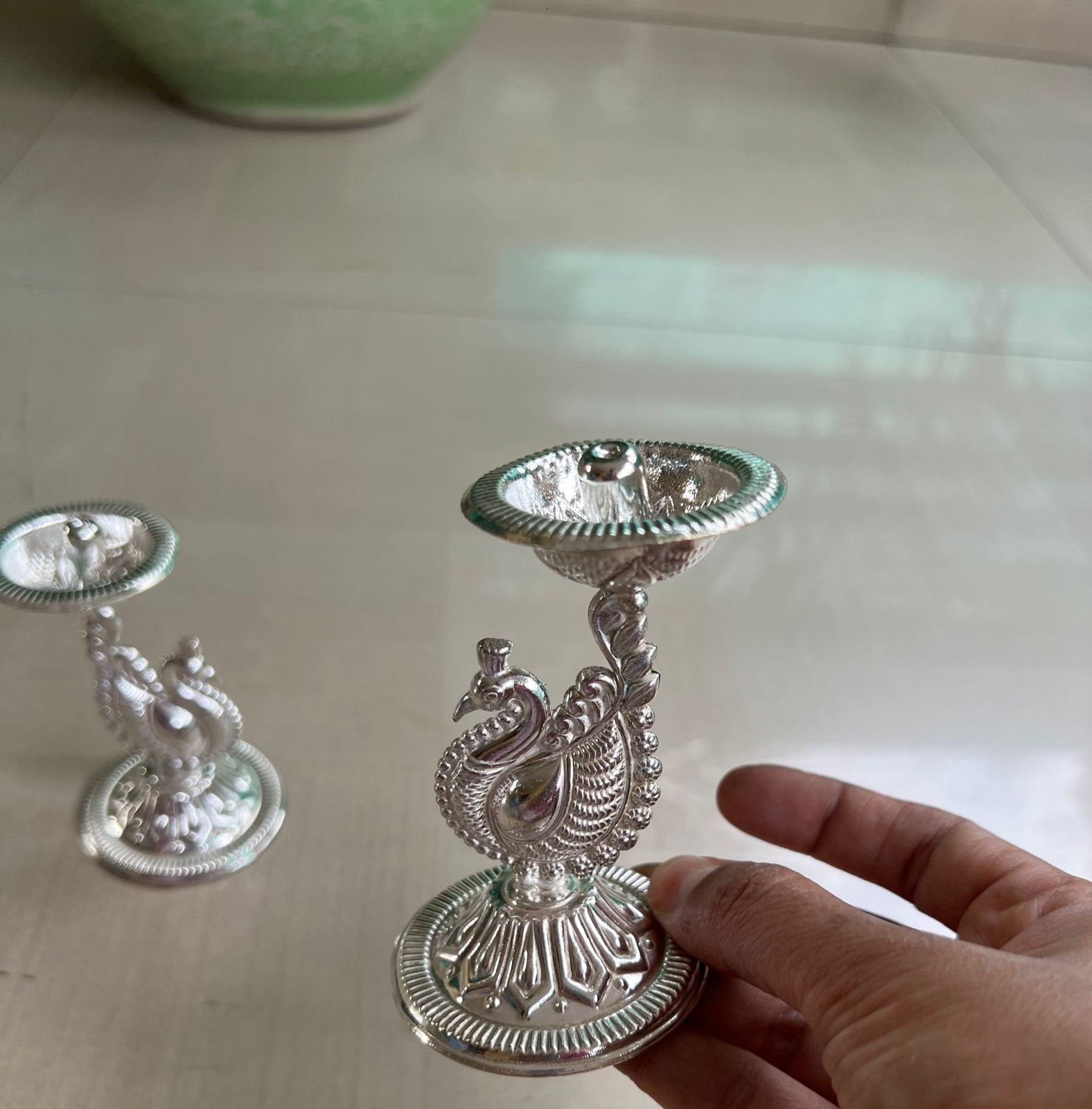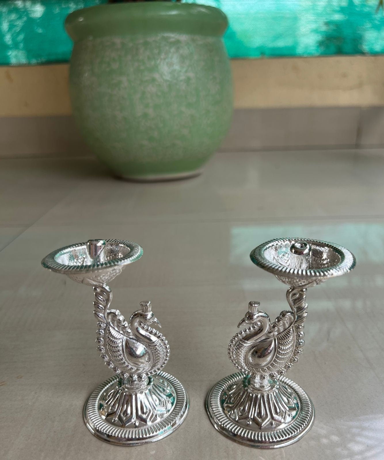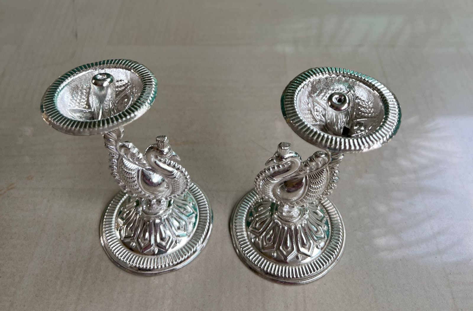 Cute peacock deepams! Size: height 3.5” till peacock