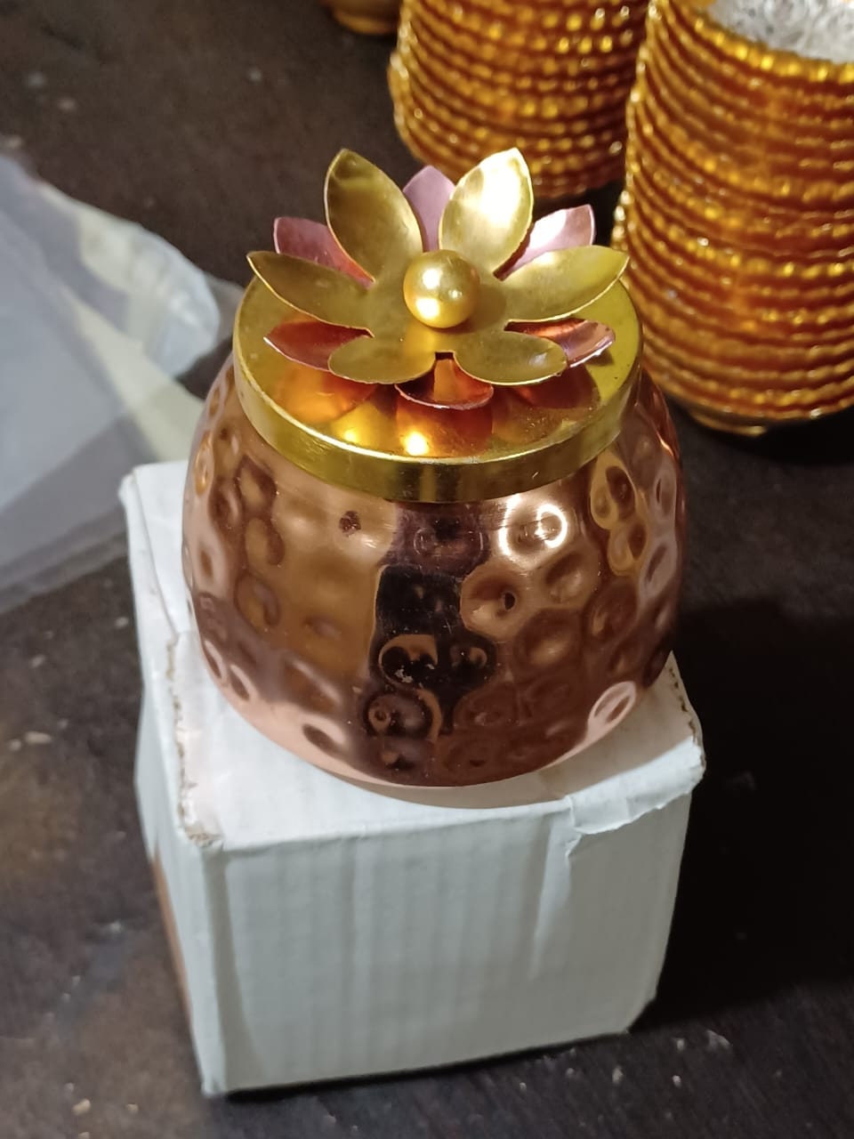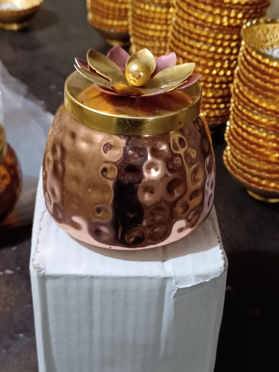 Contact Us: Feel free to contact us back anytime for any query. What's app us at 7877191006Iron hammered dry fruit jars Plated Fruit Bowl 4 inch with Lid (Pot Shape), Return Gifts Baby Shower, Serving Bowls/party function jar