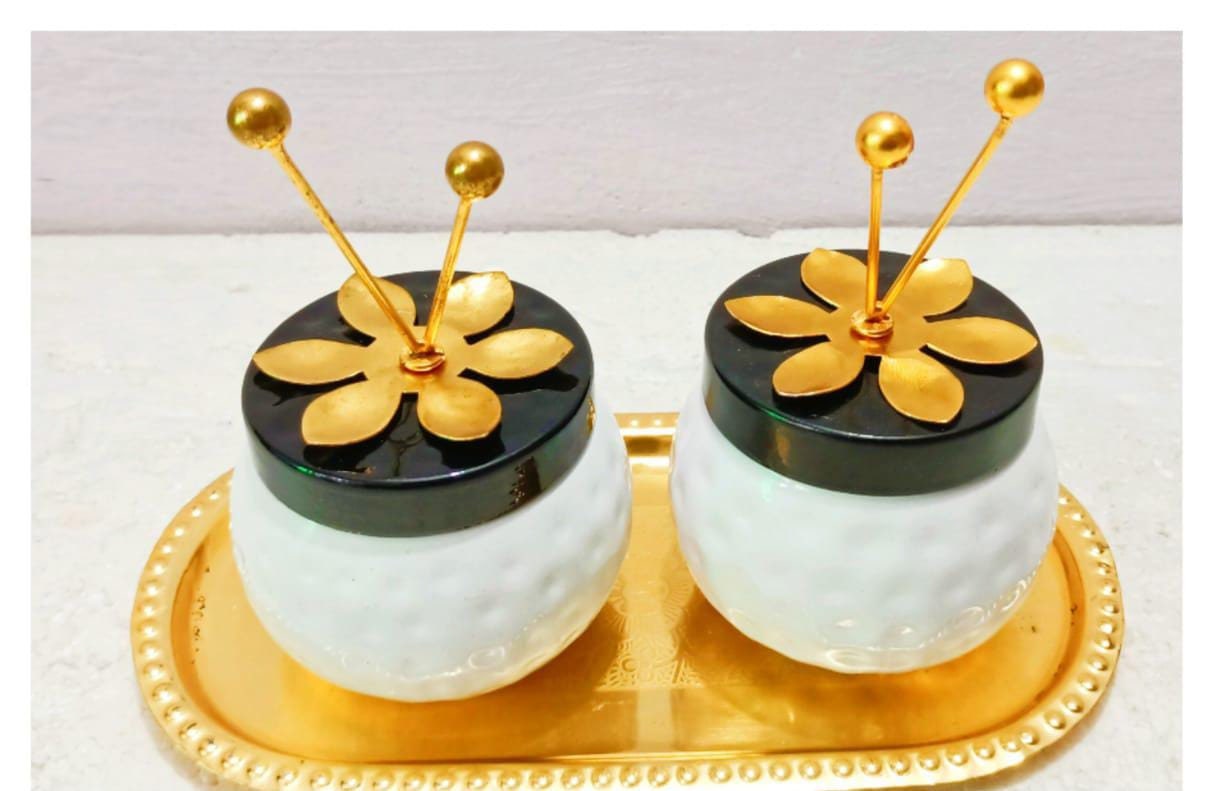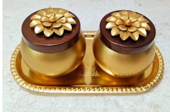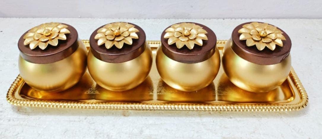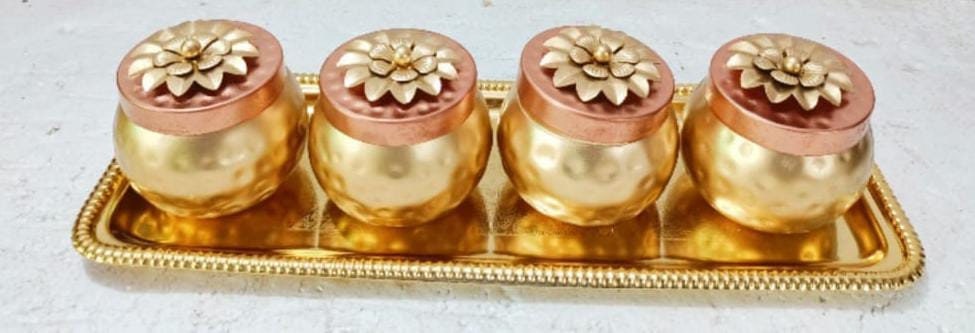 Iron hammered dry fruit jars Gold Plated Fruit Bowl 4 inch with Lid (Pot Shape), Return Gifts Baby Shower, Serving Bowls/party function jar