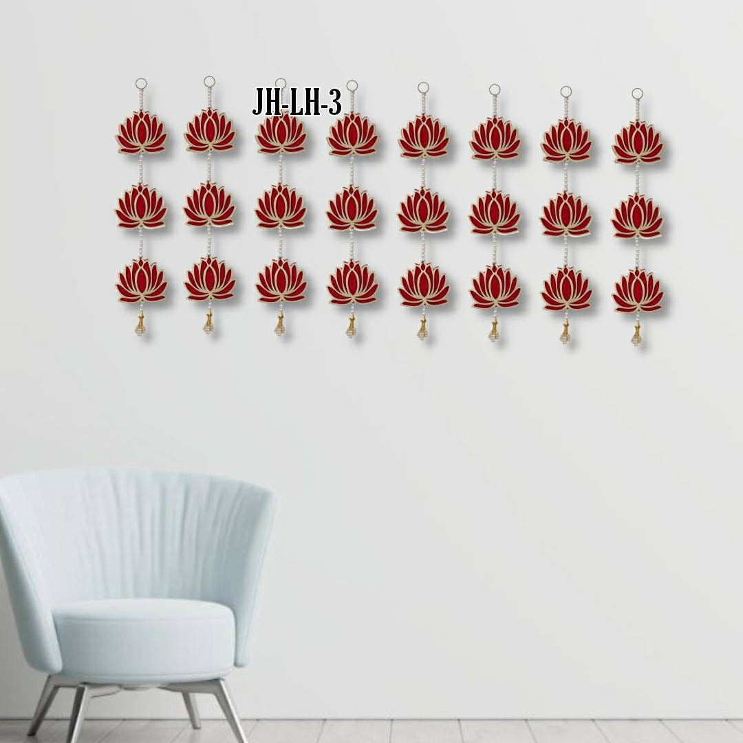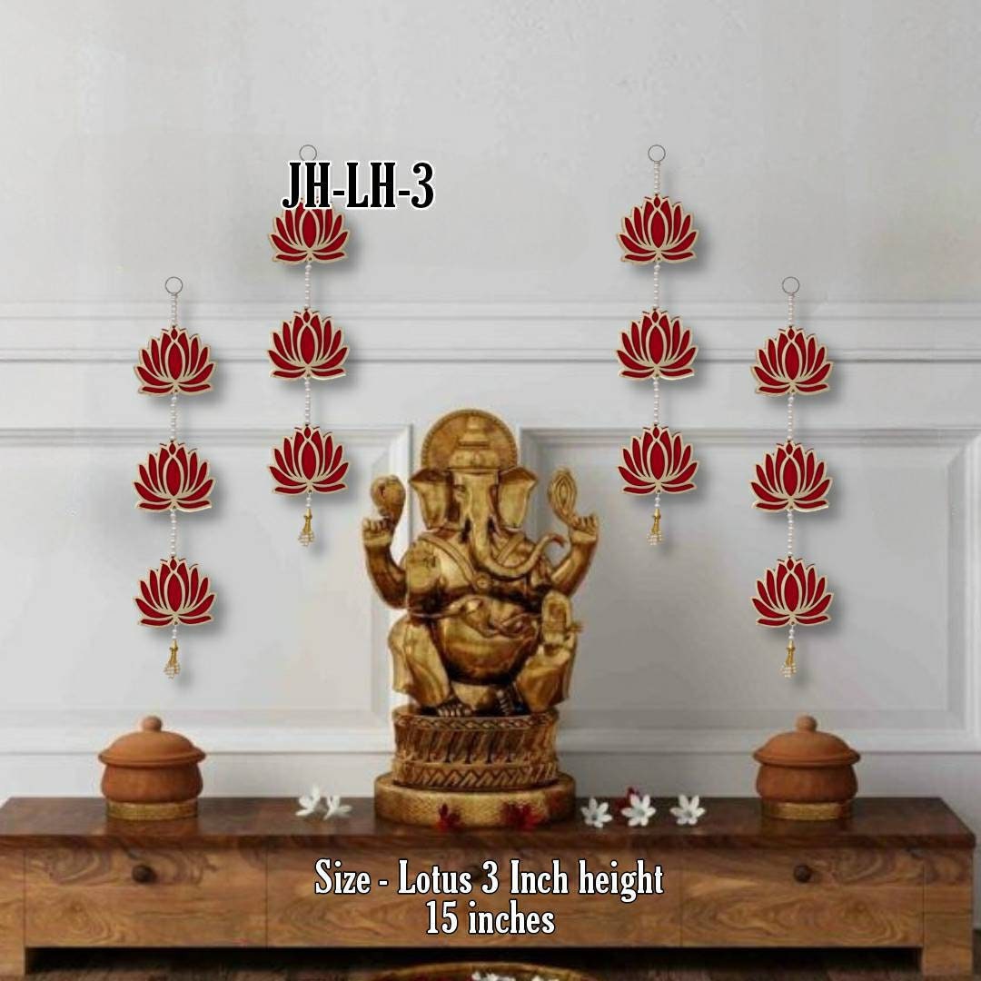 Lotus wall hanging,Lotus Back Drop Hanging Entrance Side Door Hangings for Diwali/Ganpati/Janmashtami backdrops 4 pc set- 15*3"