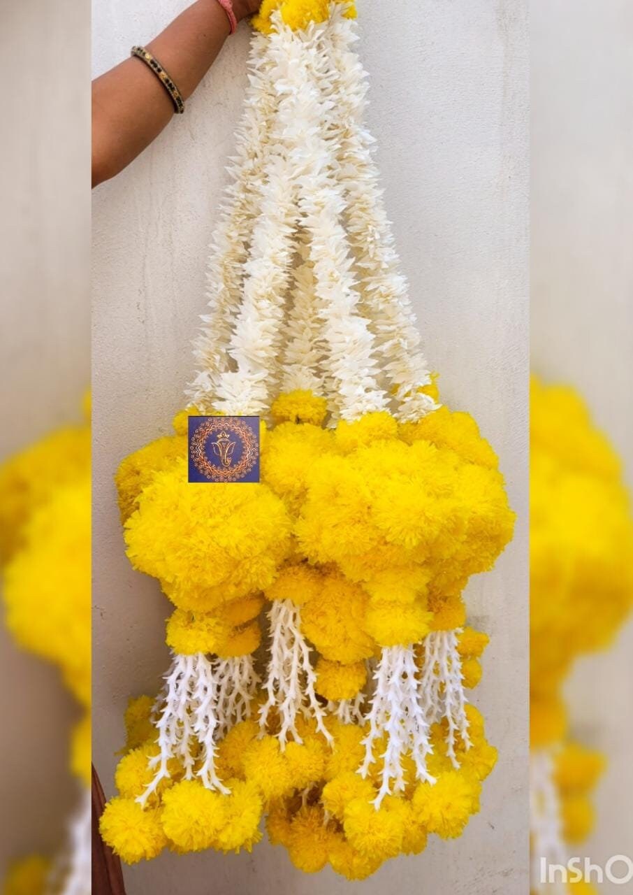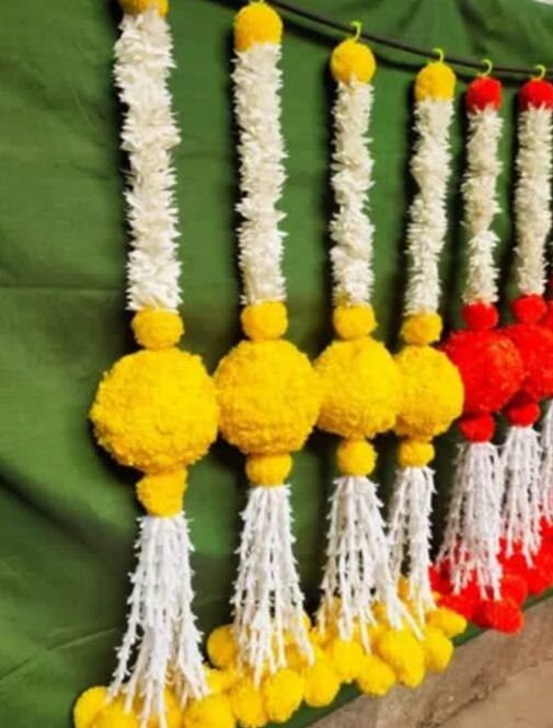 Marigold gajra ball hanging/Door Hanging Toran/valence/ganpati decoration/tempel/ Wedding decoration/marigold flower wall hanging- 6 pc set