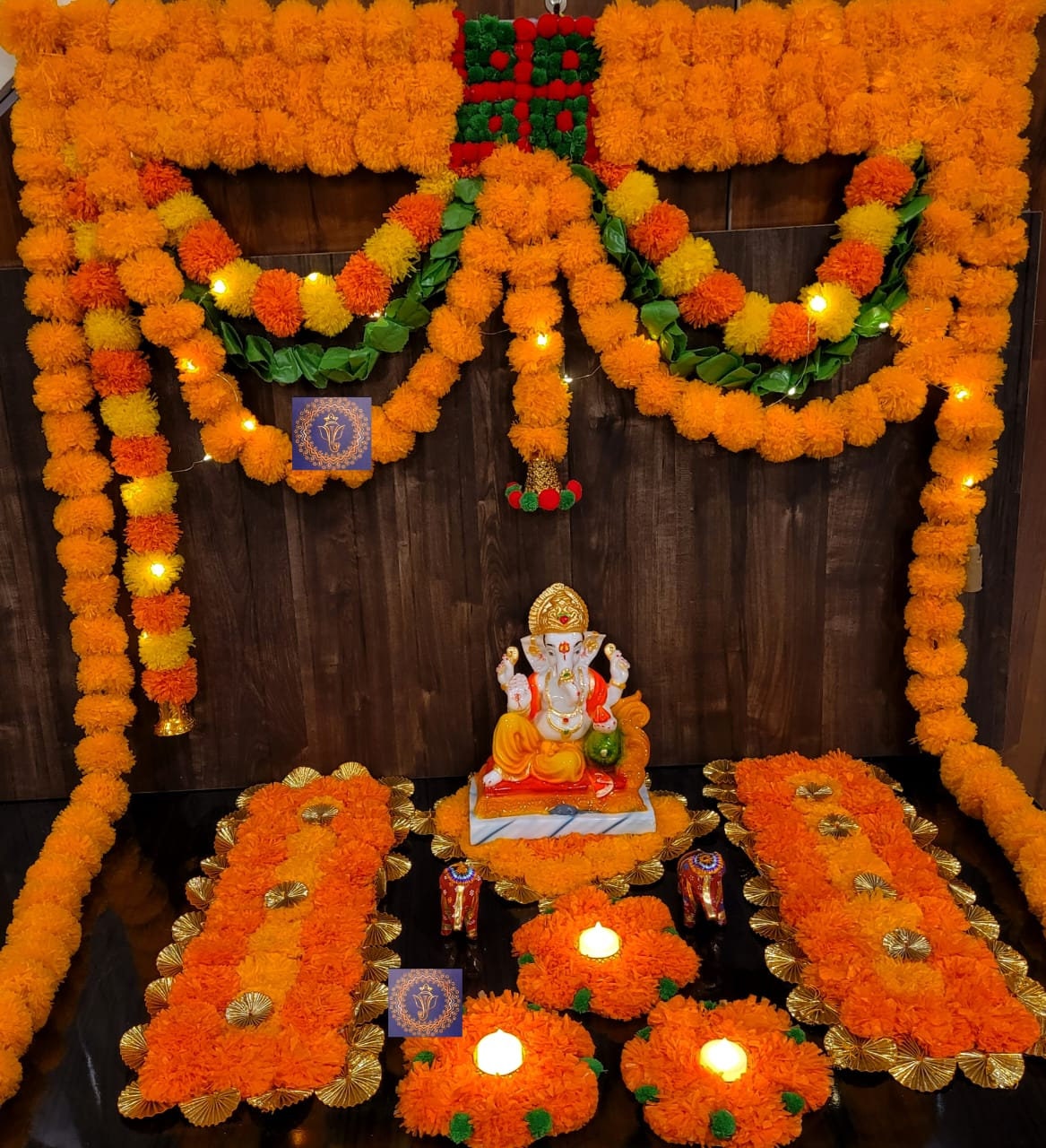 Marigold Toran/valence/ganpati decoration/backdrop/marigold flower toran/door hanging,Floral Hanging/Festival Diwali decoration- 10 pc set