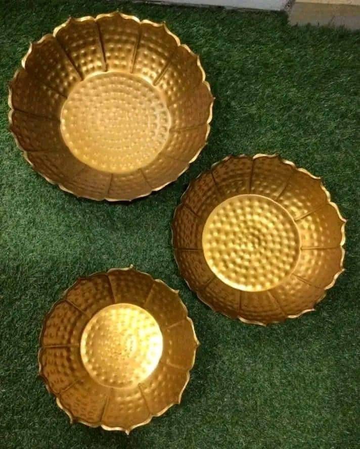 • excellent choice for gifting on occasions • decorative bowl with red iron stand • its perfect decorative piece in your kitchen and living room. • metal urili with lotus diya for diwali decoration • home office decoration indoor outdoor decor • golden urili /urli set for decoration wedding decor • Gift item Urlis Diwali Holi Festive Decor set of 3 piece • Suitable for Diwali, Dussehra/Dasara, Birthday, Wedding anniversary, House Warming. • Included Components:- Urli. The urli or uruli is a traditional indian bowl that has been used for cooking and decorating for centuries. • Easily recognizable by its distinctive shape, the urli makes a handsome addition to the decor of any room, and now, you can enjoy the beauty of one that is made according to the time-honored traditions in your own home with the handmade Iron urli. • Keep your vessel clean, neat and dry when not in use. If you are using to serve food, wash with a mild soap solution using a soft brush and wipe with a cotton cloth after use. Contact Us: Feel free to contact us back anytime for any query. What's app us at +91-7877191006